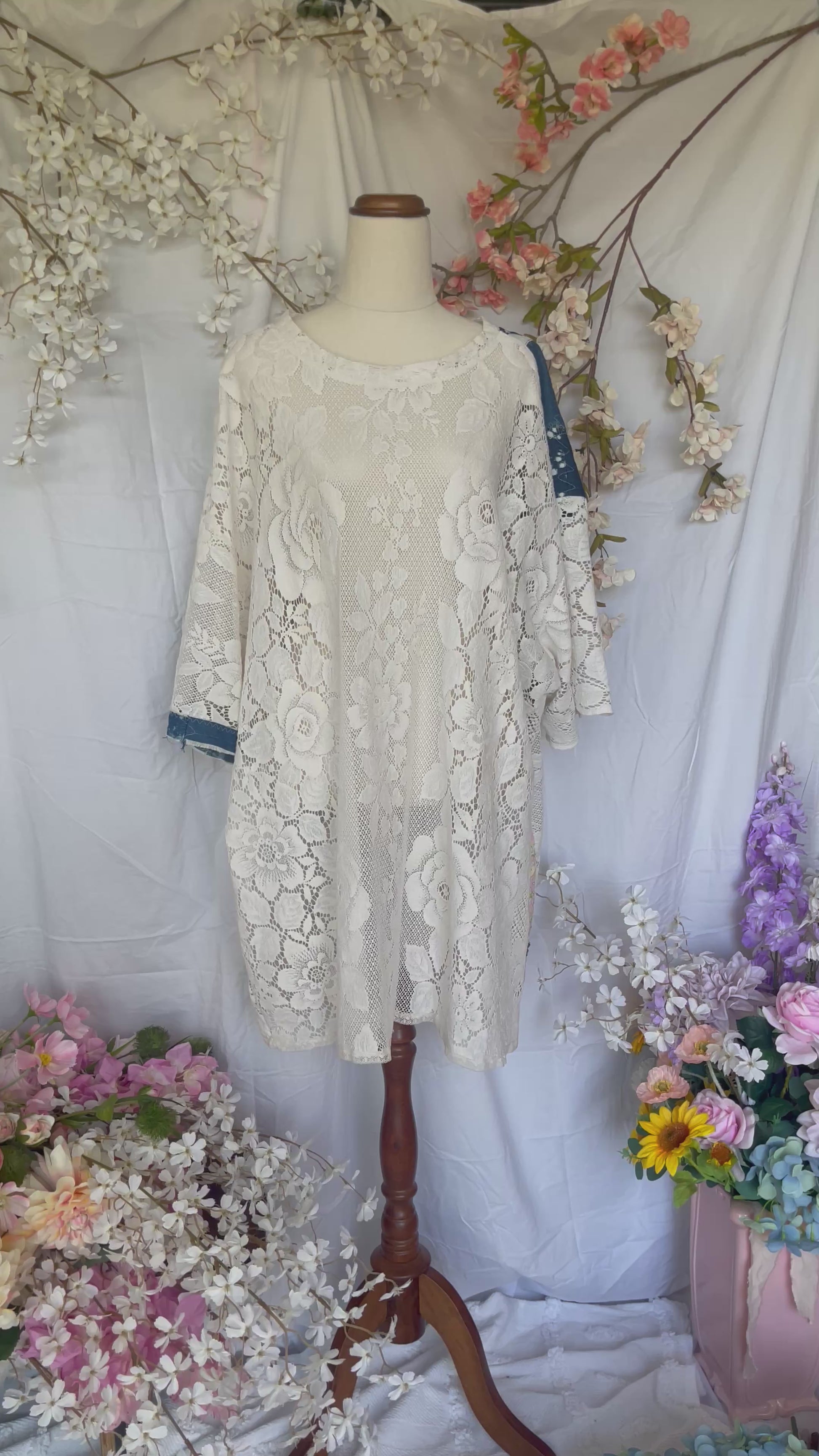 Who does not love a oversized t-shirt!! Step it up a level and layer this oversized Lace t-shirt with your favorite jeans, long sleeve fitted top and beanie or wear it over a slip dress and pair it with some boots. Could also be layered over a camisole and shorts or even a vintage petticoat. So many variations the possibilities are endless.
