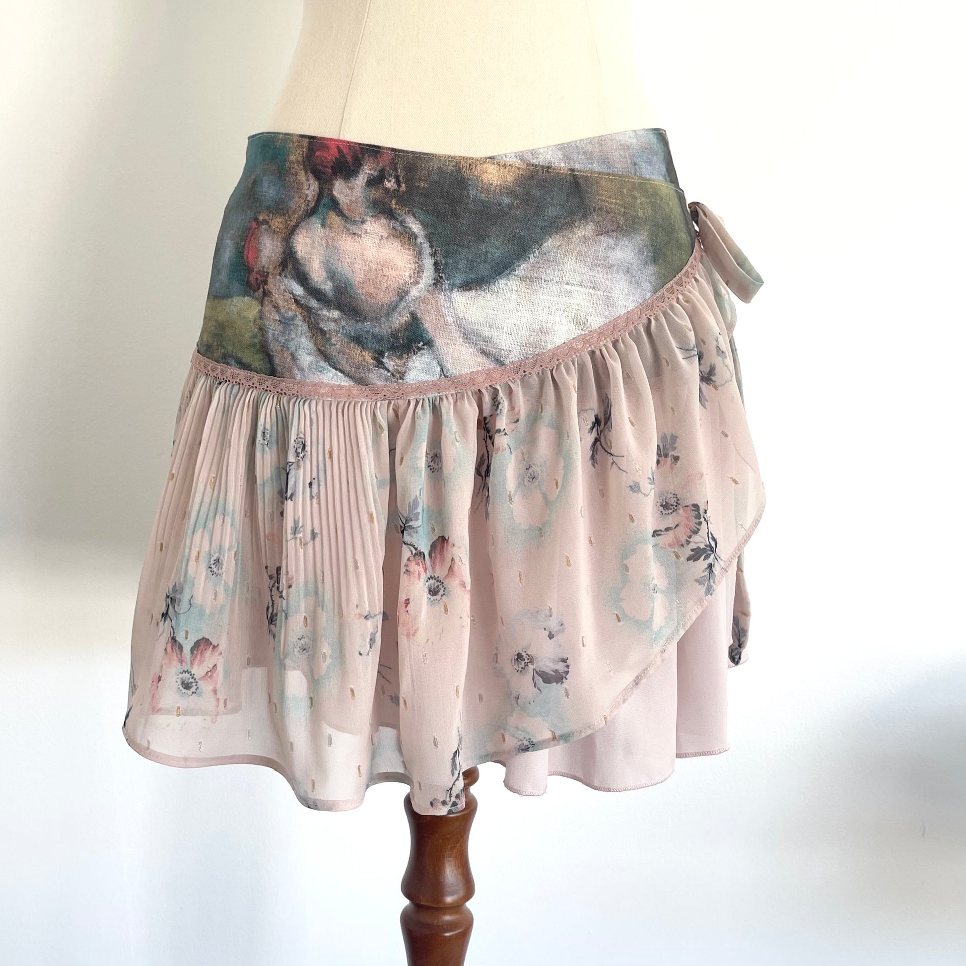 Oil Painting Wrap Ruffle Mini Skirt