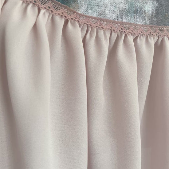 Size is adjustable due to ribbon ties on inside and outside of skirt band.